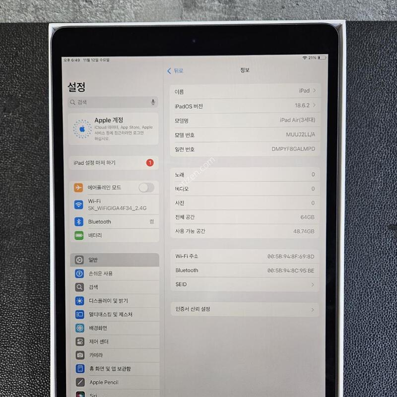 ¾ÆÀÌÆÐµå¿¡¾î3 (2019) ¿ÍÀÌÆÄÀÌ 64GB A2152