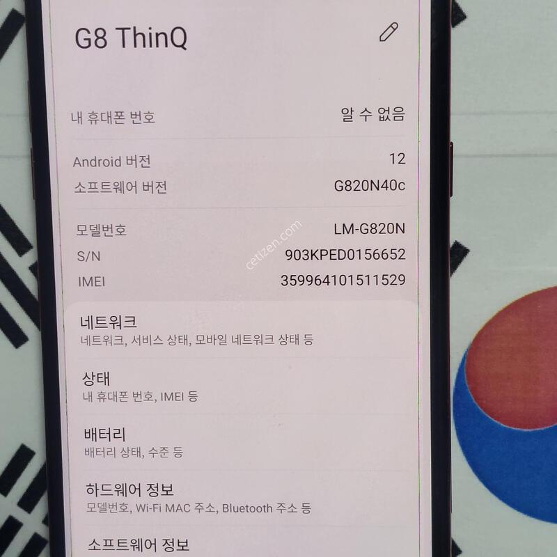 Áß°í½º¸¶Æ®Æù ThinQ G820N G8 128G Åë½Å»ç SKT 3»ç °¡´É