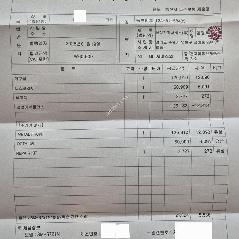 1. »ï¼º¿µµîÆ÷as¼¾ÅÍ¿¡¼ 1¿ù19ÀÏ ³¯Â¥·Î ¾×Á¤.¿ÜºÎÄÉÀ̽º.¹èÅ͸® ¿Ã±³Ã¼ ¹Þ¾Æ¿Í¼ »ç¿ë ¾øÀÌ º¸°üÁßÀÎ ÆùÀÔ´Ï´Ù.