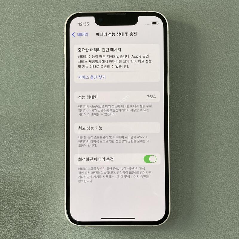 ¾×Á¤S, ¾ÆÀÌÆù 13¹Ì´Ï ÇÎÅ© 128G ¹èÅ͸®¼º´É76%